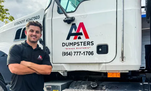 AA Dumpsters is a family owned and operated dumpster rental service. We serve Broward, Palm Beach & Miami-Dade Counties with smiles on our faces! Customers choose us over our competitors because we're reliable, honest and fair. We stand behind our work, and we strive to make everyday a great day. Another reason customers love our service is our promise to give back. When we're not hauling away junk, we're donating lightly used items to a local charity. Other times we're picking up litter at local intersections and parks. We make it a priority to give back to the community that keeps us in business.